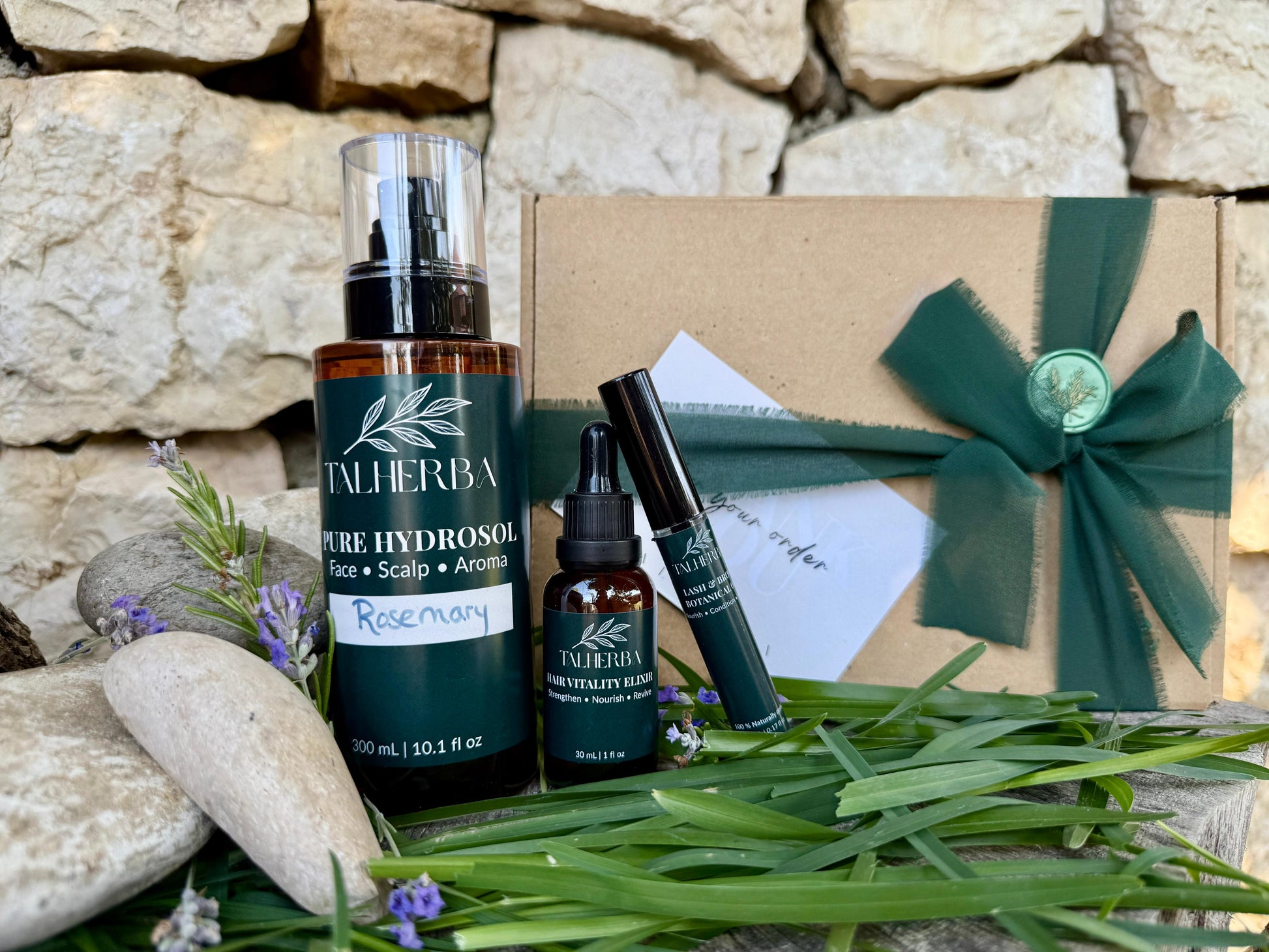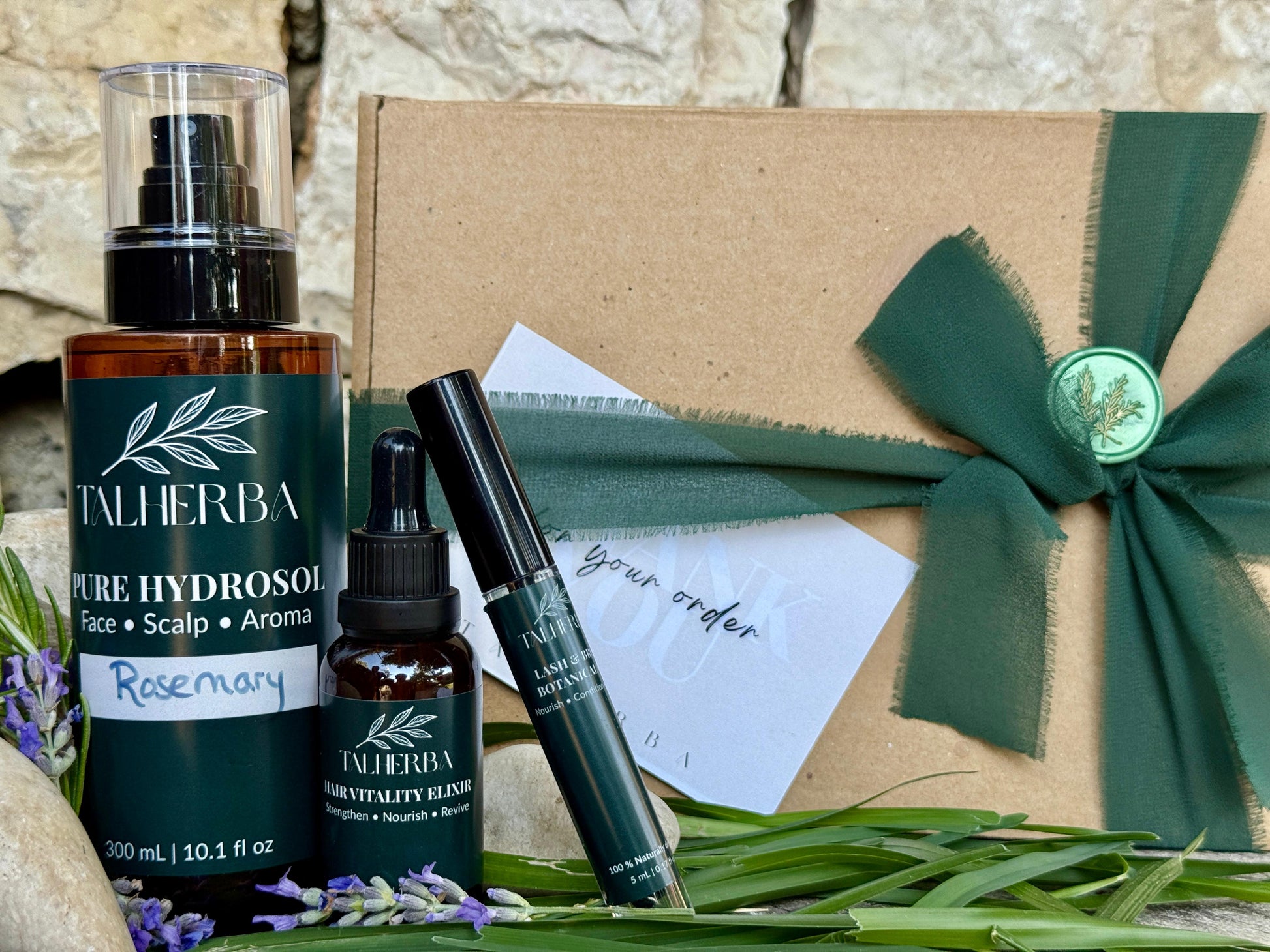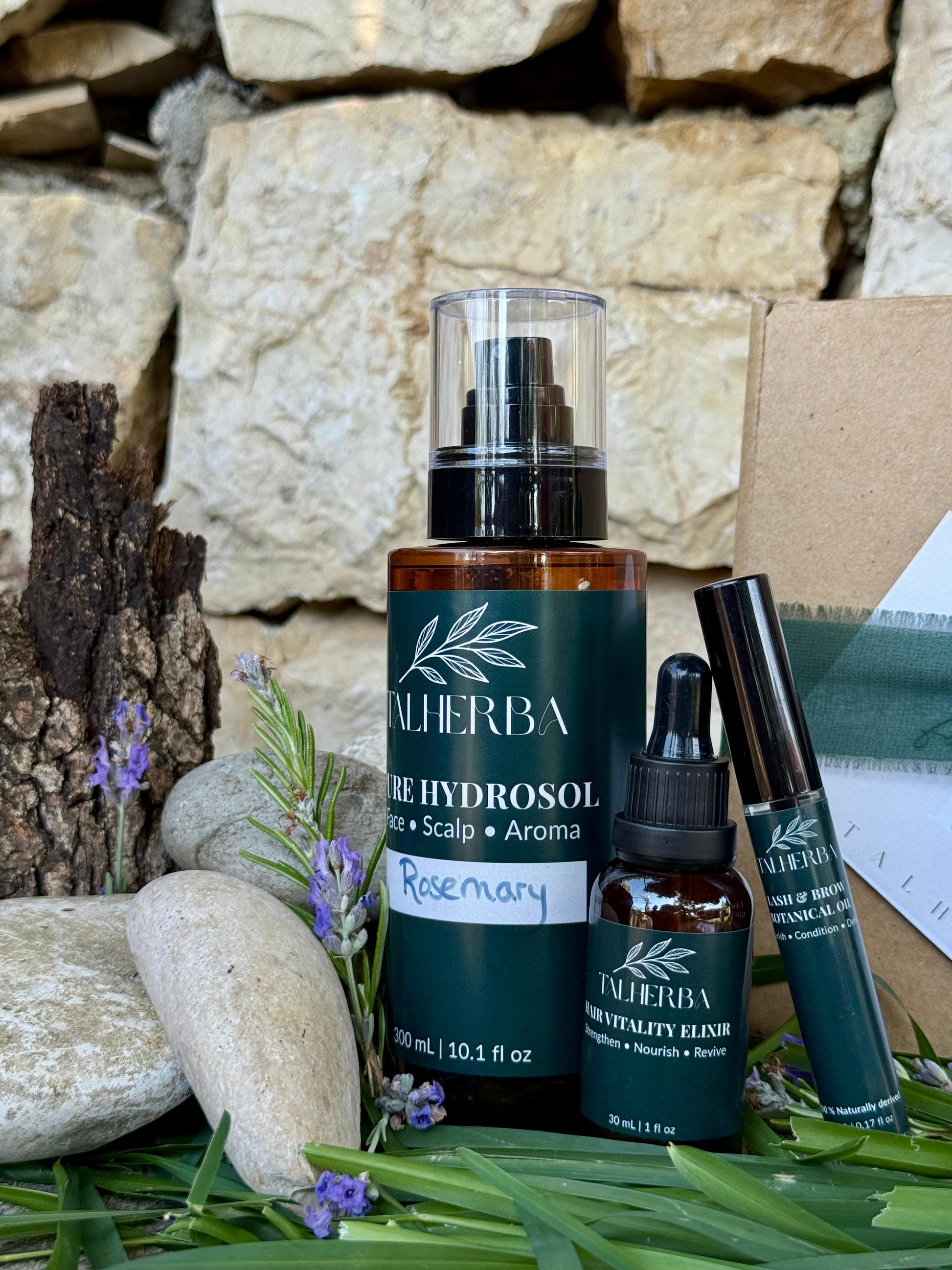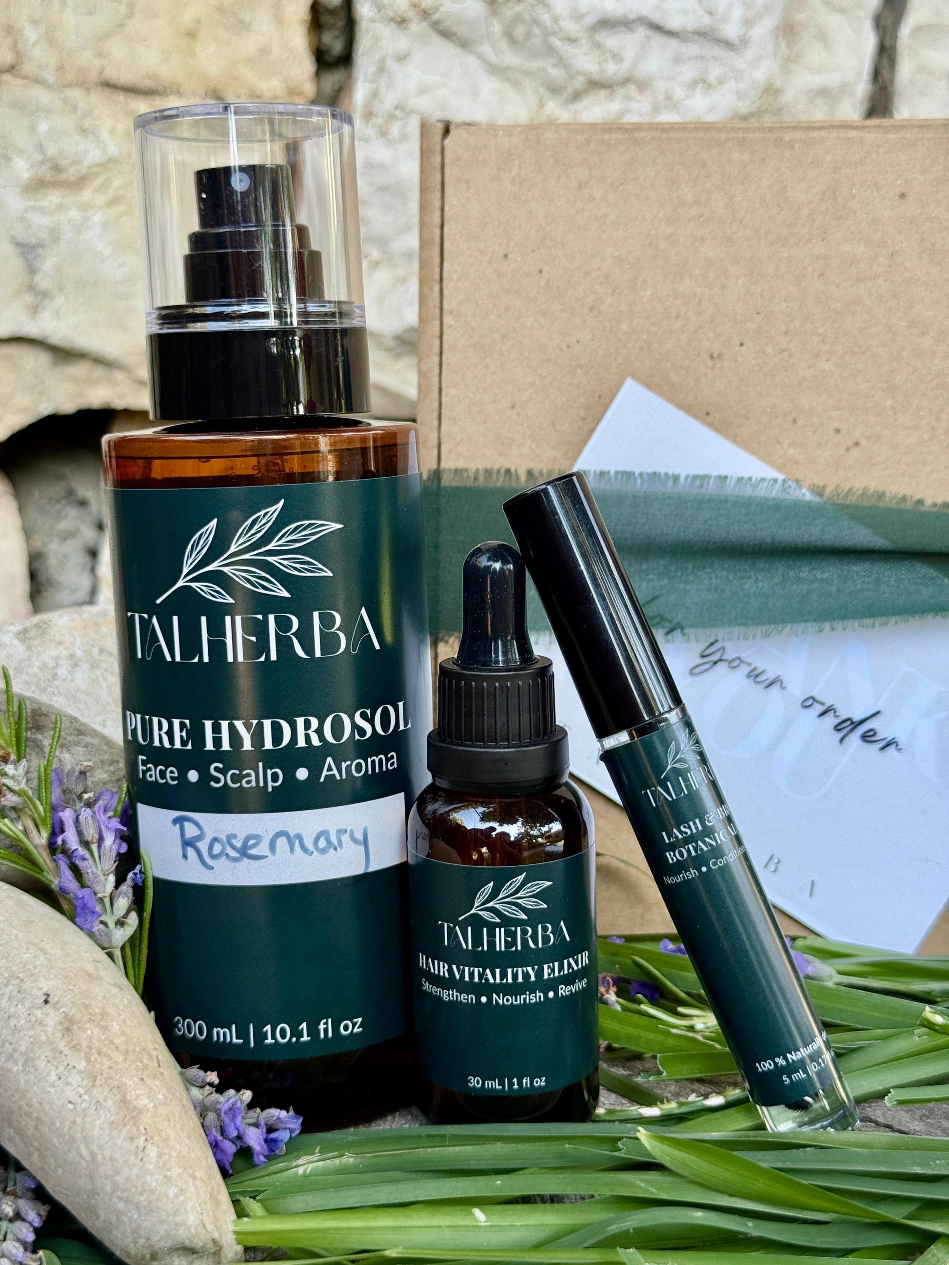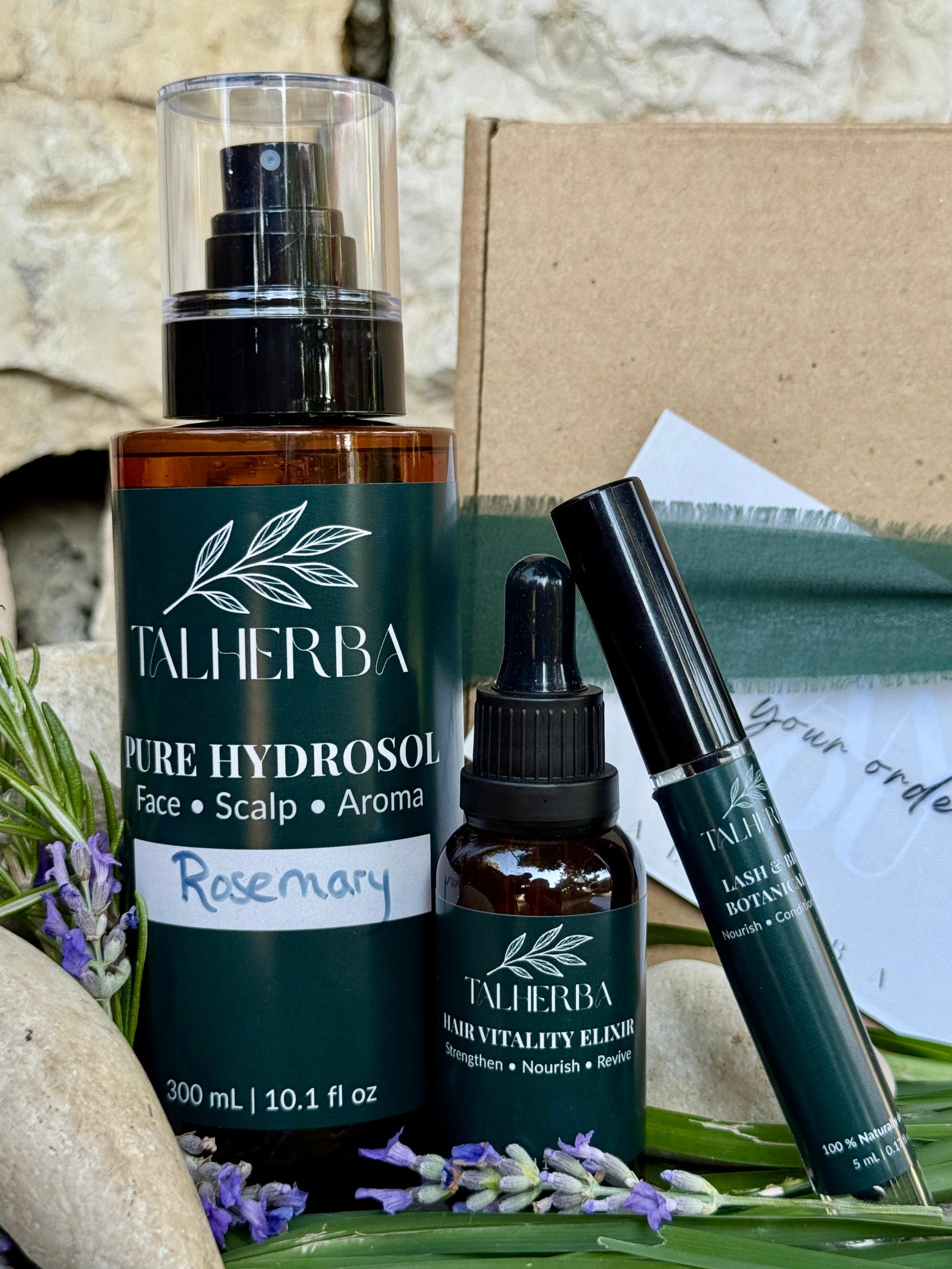 Includes: Hair & Beard Elixir 30 ml + Rosemary Hydrosol 300 ml + Lash & Brow Oil